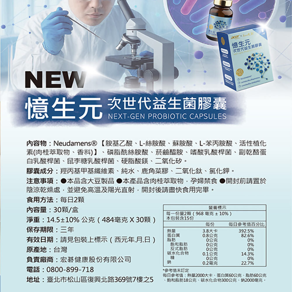 宏碁健康打造全新升級次世代配方 ( 憶生元次世代益生菌)